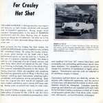 Seats from the original Hot Shot should be replaced with more modern upholstery and a remote shift lever added. Bodies come in prime finish ready for color coats. The original Crosley engine, stock or modified, provides plenty of power for the 1150 lb job, but many other small engines are available as powerplants. Stock and modified V8 Ford “60” motors have been used successfully and outstanding performance results have been obtained.