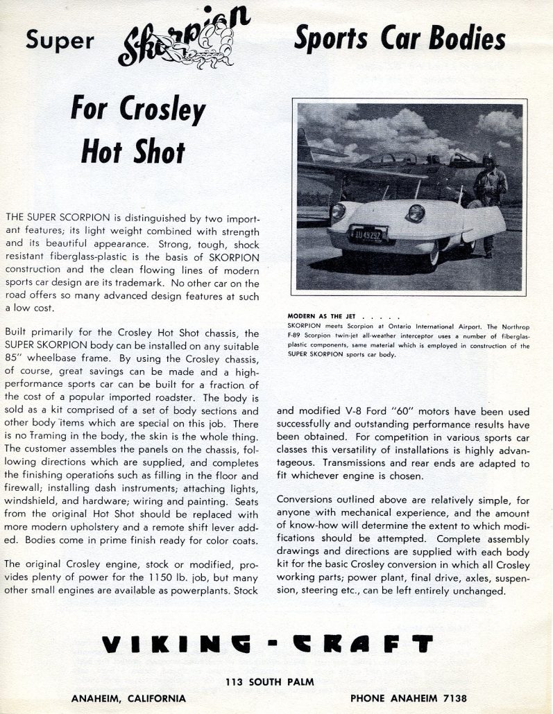 Super Skorpion Sports Car Bodies: 1953 Viking Craft Brochure