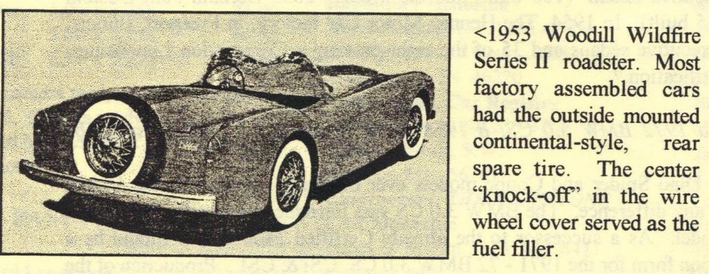 - Caption: 1953 Woodill Wildfire Series II Roadster. Most Factory Assembled Cars Had The Outside Mounted Continental-Style, Rear Spare Tire. The Center “Knock-Off” in the Wire Wheel Cover Served As The Fuel Filler.