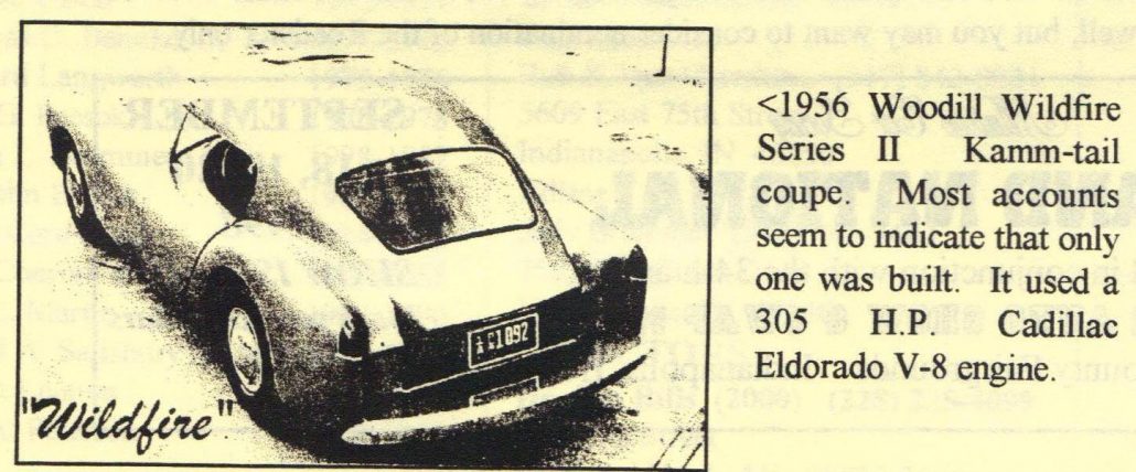 - Caption: 1956 Woodill Wildfire Series II Kamm-Tail Coupe. Most Accounts Seem To Indicate That Only One Was Built. It Used a 305 Horsepower Cadillac Eldorado V8 Engine.