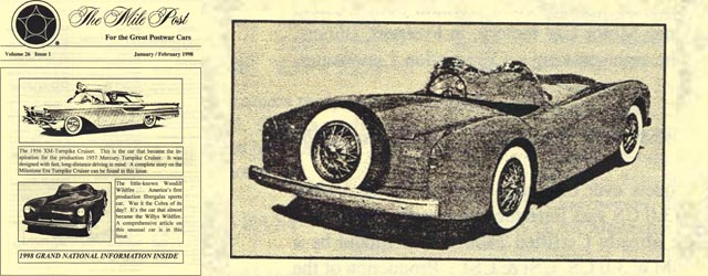 Lead In: The little-known Woodill Wildfire….America’s first production fiberglass sports car. Was it the Cobra of its day? It’s the car that almost became the Willys Wildfire. A comprehensive article on this unusual car is in this issue.