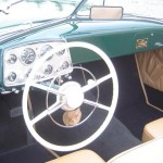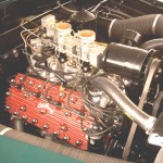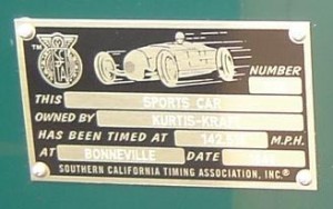 On August 27, 1949, Wally Parks, editor of Hot Rod Magazine, was clocked at 142.51 mph at the Bonneville Salt Flats driving a green Ford powered but Edelbrock built Kurtis Sports Car which later was certified as being this car (KB003). Jaguar had set a land speed record for sports cars of about 134 miles per hour. Frank Kurtis wanted to better this. He took the only production car ever painted green, and had Bobby Meeks, the engine builder for Edelbrock “stroked” the engine and installed two Stromberg 97 carburetors on an Offenhauser intake manifold and Edelbrock heads. A duplicate engine produced 380 hp on the dyno. A pressurized fuel tank was installed in place of the passenger seat and used the same bolt holes to mount it. The original car had belly pans.