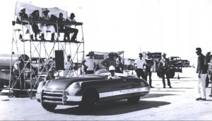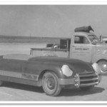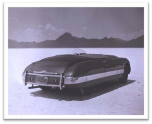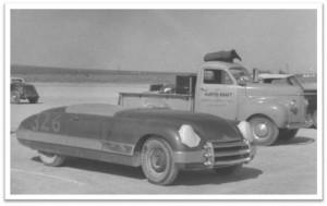 Prior to the Bonneville run for the land speed record, the car was taken to Rosamond Dry Lake in California for a shakedown run. Kurtis was able to push it to 130 mph which was just short of the speed record set by a Jaguar earlier that year. It was “captured” in a photograph taken by Lyle Allen while at the dry lake. It carried the number 326 on its rear quarter which was the same number it had when it made the Bonneville run. When it ran at Bonneville Dean Batchelor took several photographs of that record setting event.