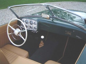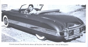 Following the formation of the partnership with Walsh, Kurtis started to develop a sports car that according to Ford Times, would rival the “challenge of the foreign sports cars…” He customized a 1941 Buick which he converted into a two passenger sports car that he drove to Indianapolis in 1948. According to an article in the October, 1948 issue of Merchanix Illustrated, this car became the basis for his sports car. Everyone was excited about it and encouraged Kurtis to put it into production. Benson Ford, in particular was so impressed that he instructed the Ford Warehouse in California to supply Kurtis with whatever Ford parts he needed. Tom McCahill of Mechanics Illustrated wrote of the prototype, “It has speed, safety, luxury, and dazzling class.” Veteran racer, Bud Winfield reported to Hot Rod Magazine in February 1949 that the Kurtis Sports Car had “remarkable handling characteristics that may well compete with that of foreign sportsters.” The wheelbase was 100 inches and the tread 56 inches. It was only 48 inches tall and 170 inches from bumper to bumper.
