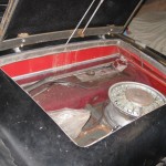 As you peruse the pictures in the gallery below, you’ll find that most of the components from drive train, chrome, and accessories are Kaiser.  Scott and others have checked with the Kaiser Enthusiasts Group and no one has seen or heard of this car before.  The car was found in the Los Angeles area and was in a garage for years without any additional information stored with the car.  When Scott bought the car, there was an intriguing trophy or two that came with the car, but again no stories, names, or heritage.  Only the name on the nose of the car that says “Gisler”.
