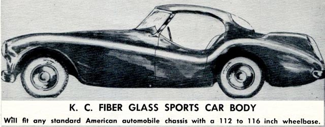 - In the John Bond archive at Kettering University, Michigan, I found a copy of the ad for this company with Bond’s handwritten note as follows, “Charles, didn’t we write to this company?” This suggests to me that they requested information, but nothing in the files shows that a reply was received from the K.C. Fiberglass Sports Car Company (the Bond Archive has an extensive file/boxes on fiberglass cars of the day that John Bond collected information on).