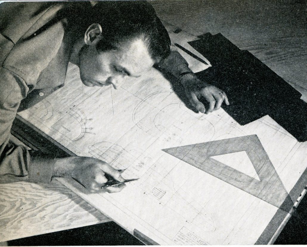 The student then reduces an actual manufacturer’s drawing of an existing model to 1/8, ¼, or 3/8 scale, whichever is decided upon.  He then makes a set of dimensions from the reduced drawing.