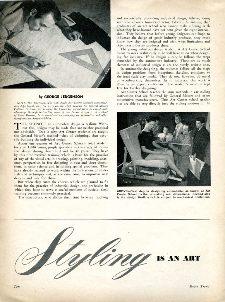 Automotive Styling Is An Art – by George Jergenson, Art Center School of Design: Motor Trend, October 1949 — 5 Comments