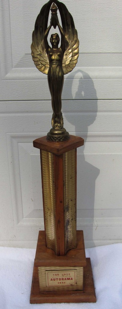 I have some more early pics of the small car. One is of my brother and me in the car, probably taken in ’53, at ages 6 and 4. The other, dated April 1952, is obviously when it was being built. and pics of the trophy from San Jose Autorama 1961.