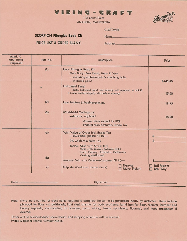 Skorpion Car Order form 1