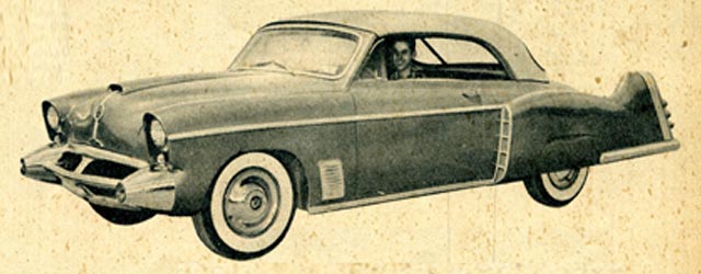 What did all this cost in early 1950s dollars?   The lowest amount found mentioned was for very minimal custom work and of the cars and designs known this was likely on a ’50Pontiacconvertible.   Apparent from its photograph are minor changes on the production grille, a more formal convertible top covering eliminating the quarter windows, Le Sabre fins (with rear center nacelle unlikely), and necessary repaint.  This cost “a few hundred dollars”.