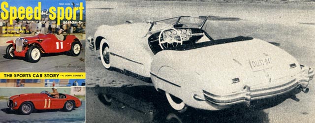 Time and time the Rogue appears as a footnote in history books and small pictures with captions appear in early automobile magazines. But nothing in detail. Until yesterday when I finally hit paydirt – a full page of history on the car that appeared in Trend Book 104, 1952, titled “Speed and Sport.”
