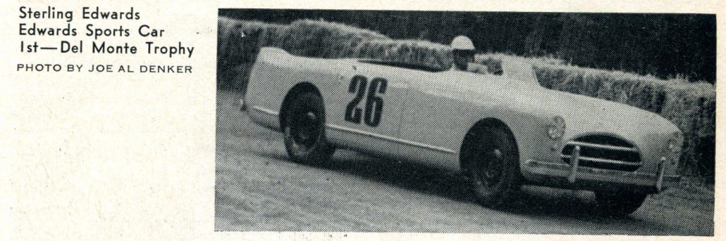 - Caption: Sterling Edwards – Edwards Sports Car 1st – Del Monte Trophy. (Road & Track, January 1951).