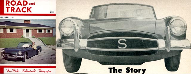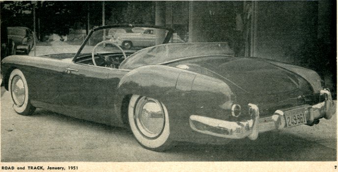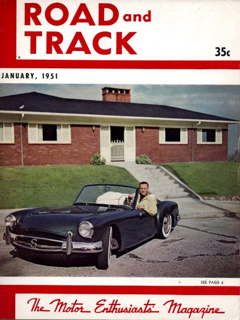 In less than one year fiberglass bodies such as the Glasspar, Lancer, and Skorpion would become available, but chance favors the brave and Tom built and designed his car – much to the enjoyment of an appreciating public who fawned over his creation – here on the cover of Road & Track Magazine in January ’51.