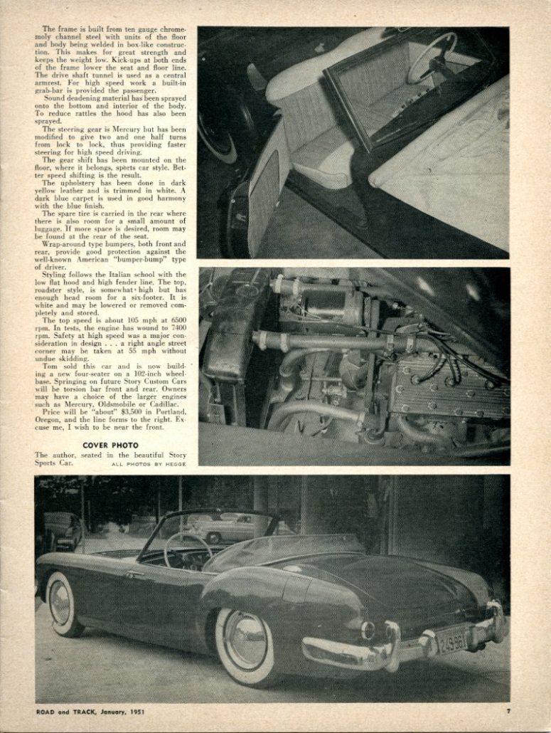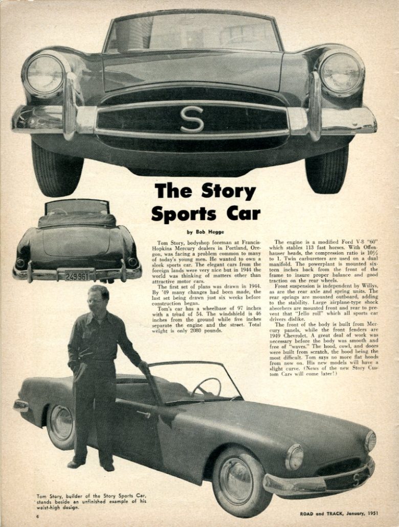 So far, the research I’ve done revealed only one Story sports car – but the article talks about another one in development. Hmmmmm… I have a lead on Tom Story’s family in Oregon. I wonder what they have in the garage?