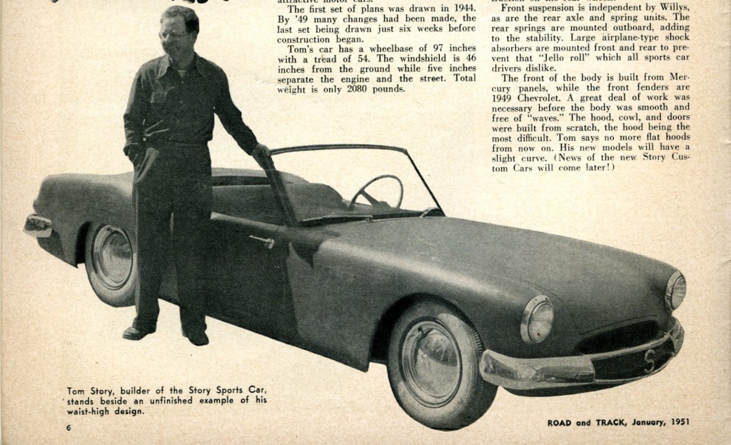 Tom Story, bodyshop foreman at Francis-Hopkins Mercury dealers in Portland, Oregon, was facing a problem common to many of today’s young men. He wanted to own a sleek sports car. The elegant cars from the foreign lands were very nice but in 1944 the world was thinking of matters other than attractive motor cars.