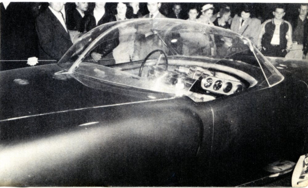 Changes consist of a new grille, hood, windshield, cowl, clear plastic roof, deck and tail lights. Sedan front doors were used by re-working the top section. The head light frames were rotated 180 degrees which sets the parking lights below. Bumpers are 1949 Commander. The hood and deck are equipped with an automatic lift, operated by compressed air.