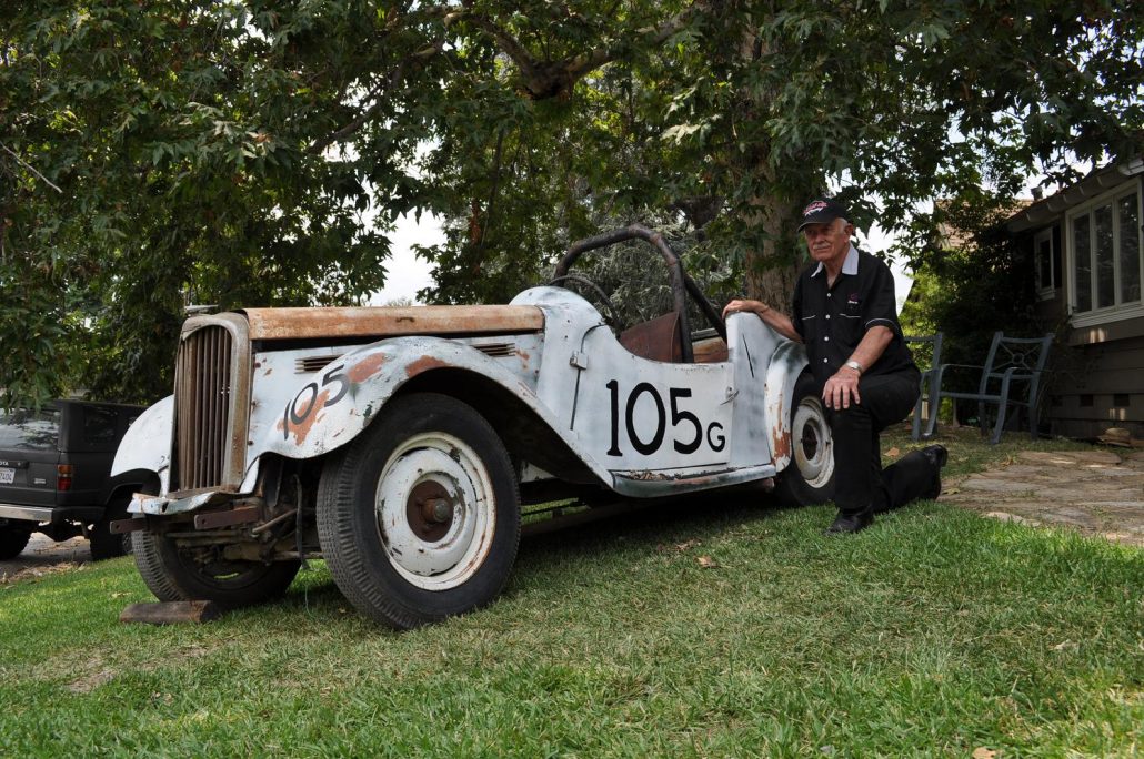 This was a busy day. Dennis Gerdes brought the Singer race car over in the morning – shortly before Ralph Bush and Lorraine arrived from a long drive starting from their homes north of Los Angeles. We met in Altadena and spent the day with Ralph Bush, Lorraine and others. Those that were there included Erich Schultz, Dennis Gerdes, Rick D’Louhy and myself (Geoff Hacker). During this time we took videos of Ralph’s memories racing the car as well as 200+ photos shown below. The videos are shared on the main page for Ralph Bush.