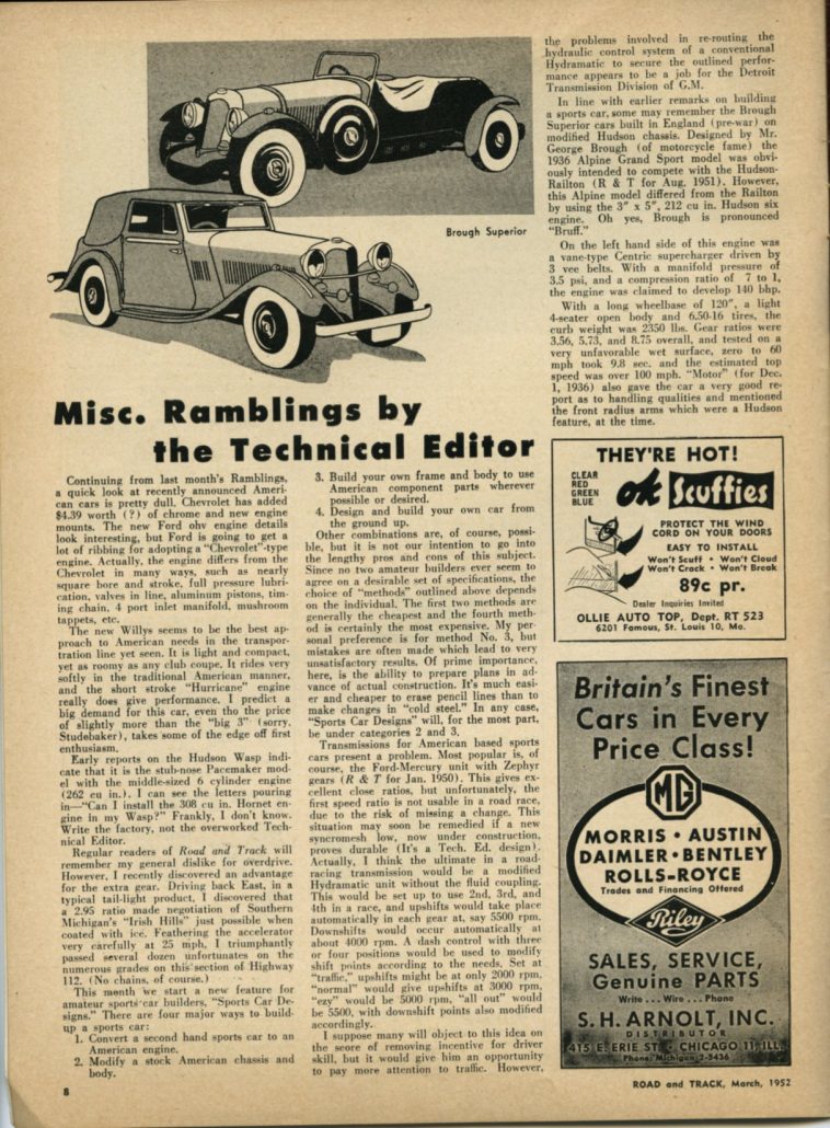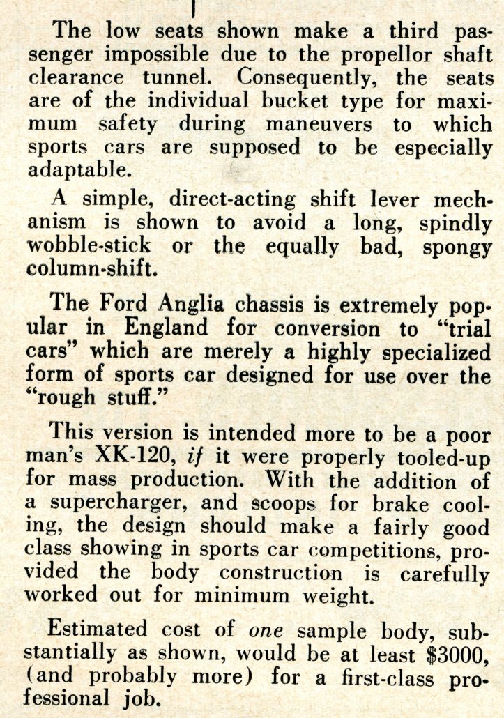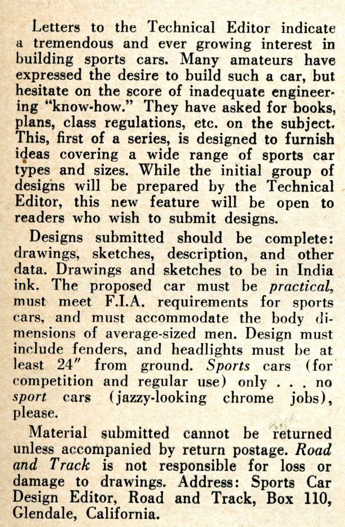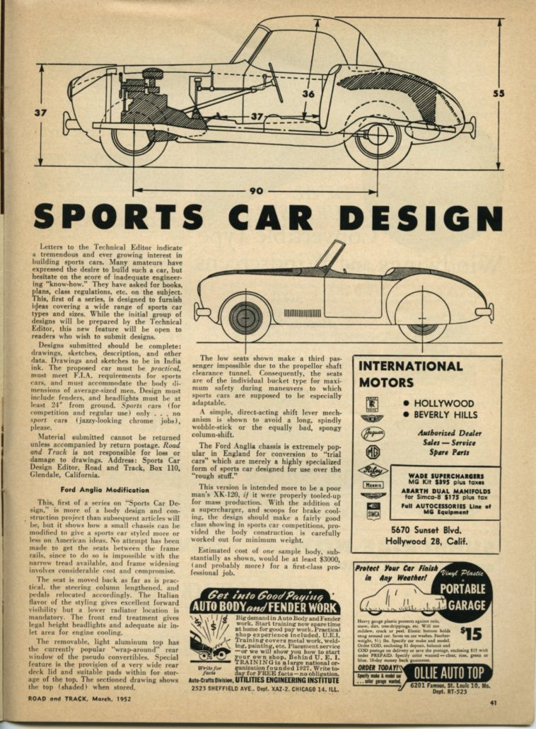 By early 1952, he had polished his ideas and was ready to begin presenting them to the American public more formally. It was in March of 1952 where he printed his first “Sports Car Design” article. He saw the series of articles in the following way: