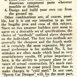 This was the first in a series of articles which would continue thru October 1959, and produce over 50 separate musings on this topic. Bond did many things thru these articles, from chassis design (Chuck Manning), body design and streamling, and even a 4 part article in the late 1950’s proposing a American design that would win the Le Mans race in Europe – body designed by the legendary Strother MacMinn no less.
